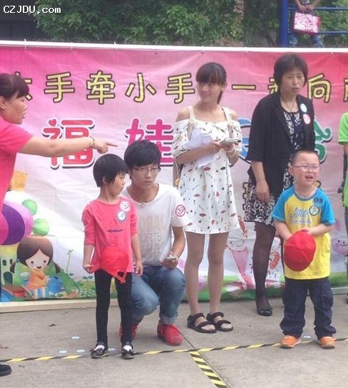 親子活動(dòng)現(xiàn)場(chǎng),孩子嬉笑聲夾雜著兒童歌曲,在綠色小樹(shù)林的背景下瞬間讓我們?nèi)谌肫渲?,仿佛回到了童年,很快便投入了狀態(tài)。我們協(xié)助社區(qū)老師組織家長(zhǎng)和小朋友們愉快而有序地開(kāi)展了一系列活動(dòng)?;顒?dòng)內(nèi)容豐富,形式多樣,有“趕小豬”、“下蛋比賽”、“袋鼠跳”、“超級(jí)奶爸”、“打保齡球”、“寶寶坐花轎”、“我給媽媽帶帽子”、“親子接力賽”。社團(tuán)學(xué)生認(rèn)真而有耐心地為活動(dòng)維持秩序,看護(hù)幼兒安全,受到了社區(qū)領(lǐng)導(dǎo)和家長(zhǎng)的贊譽(yù);建東學(xué)生在志愿服務(wù)過(guò)程中也體會(huì)了真誠(chéng)服務(wù)的價(jià)值,感受到了家庭親密關(guān)系的溫暖,是一次難得的心理體驗(yàn)。
