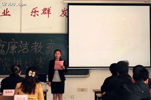 在初賽廣泛參與基礎(chǔ)上選拔出的五名選手分別代表五個(gè)系參加決賽。決賽分為四大環(huán)節(jié):PPT演講、現(xiàn)場答辯、觀眾互動(dòng)問答、廉潔文化視頻觀摩。選手需要在PPT制作、演講內(nèi)容、語言表達(dá)、現(xiàn)場答辯四個(gè)方面圍繞主題進(jìn)行有創(chuàng)意、有表現(xiàn)力的演講。