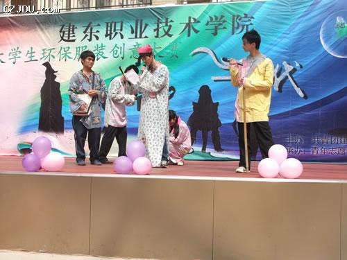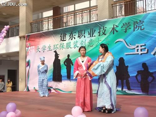 別出心裁的設(shè)計(jì)、五花八門的制作材料、樸實(shí)而又不低調(diào)的服飾創(chuàng)意緊扣環(huán)保理念給全校師生創(chuàng)造了一場視覺上的盛宴,處處彰顯著當(dāng)代大學(xué)生天馬行空般的思想,展現(xiàn)出屬于他們的活力!經(jīng)管系青年志愿者協(xié)會的惡搞70串燒秀以其詼諧幽默的表演、獨(dú)到貼身的服裝再現(xiàn)了70年代鄉(xiāng)村農(nóng)民的質(zhì)樸純真;院志愿者協(xié)會代表隊(duì)則帶著大家來到了雍正王朝,上演了一場別具一格的‘清朝style’;電子系學(xué)生會代表隊(duì),利用廢舊床單、舊蚊帳等材料再現(xiàn)了唐朝書生趕考的橋段,恍惚間帶著大家穿越到了大唐盛世,華麗的服飾頗具特色,如鳳凰涅槃一般重獲新生,煥發(fā)別樣光彩,將唐代主題展現(xiàn)的淋漓盡致……活動在熱烈的掌聲中圓滿落下了帷幕!