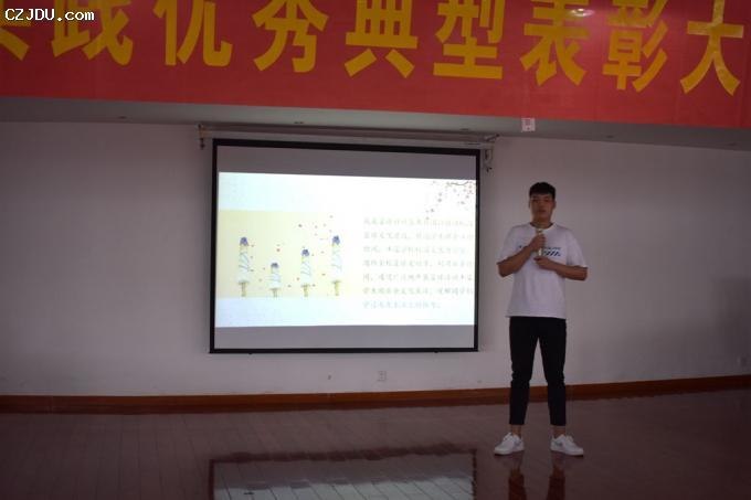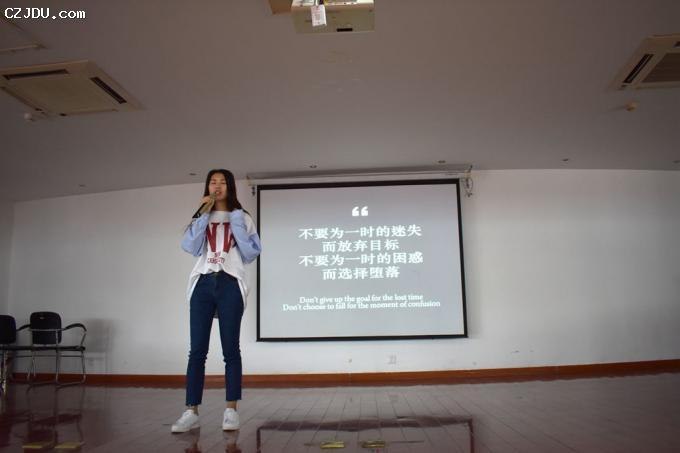 最后,“自強(qiáng)之星”的四名同學(xué):沈鴻飛、張洪順、曹士林與錢(qián)逸軒首先用演講結(jié)合PPT演示的形式向同學(xué)們展示了他們?cè)谛赡甓鄷r(shí)間內(nèi),在學(xué)習(xí)、生活、工作等各方面成長(zhǎng)的過(guò)程中如何克服挫折、自立自強(qiáng)從而收獲成績(jī)。然后,用一首《少年中國(guó)說(shuō)》的激情演繹鼓舞全場(chǎng)所有新生,少年需自強(qiáng)。