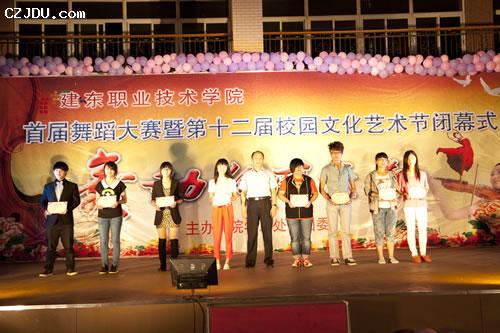 活動期間,相關(guān)領(lǐng)導(dǎo)還向在本次校園文化藝術(shù)節(jié)各項(xiàng)活動中獲獎的個人和集體頒發(fā)了獎狀?!凹t五月”大合唱比賽、校園十佳歌手比賽、水果拼盤比賽、“校園星主播”主持人大賽、“年代秀”環(huán)保服飾創(chuàng)意大賽、校園達(dá)人秀、“發(fā)現(xiàn)建東,發(fā)現(xiàn)美”校園影像大賽、校園文明拍客大賽等比賽中榮獲佳績的老師、同學(xué)相繼走上舞臺一展風(fēng)采。
