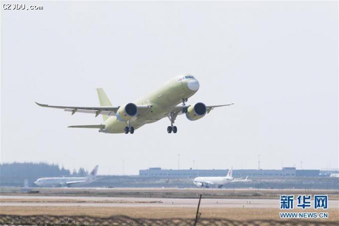 10月24日,C919大型客機105架機在上海浦東國際機場起飛。新華社發(fā)