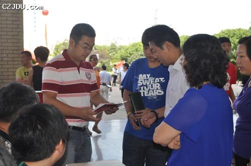 在迎新工作開始前,全院召開了迎新工作協(xié)調會議。院長王榮成,副院長丁高明、孫利兵等院領導在8月31日下午視察了迎新工作的準備情況,對于從外地趕來新生報到的新生和家長提前展開了報到工作。在正式報到的首日,院長王榮成,副院長丁高明、孫利兵來到了新生報到的現(xiàn)場指導迎新工作,慰問參加迎新的師生。院長王榮成,副院長丁高明、孫利兵等院領導親切地與新生和家長交流,并要求參加迎新的師生做好防暑工作,使迎新工作正常進行。