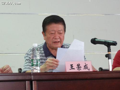 王榮成院長宣讀《關(guān)于表彰2013-2014學(xué)年學(xué)院優(yōu)秀教師及先進(jìn)教育工作者的決定》及《關(guān)于表彰2013-2014學(xué)年學(xué)院教書育人楷模的決定》