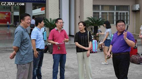 王榮成院長(左一),黨委書記丁高明副院長(右一),院辦劉如主任(左二),總務處李玉梅處長(右二),經(jīng)管系學管主任夏海煒(中)在現(xiàn)場指導工作
