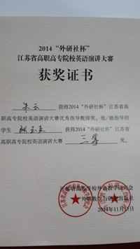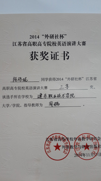 本屆大賽分預(yù)賽、復(fù)賽和決賽三階段。預(yù)賽由參賽各校進(jìn)行校內(nèi)選拔,復(fù)賽和決賽于11月14日和15日進(jìn)行現(xiàn)場對決。復(fù)賽階段,選手根據(jù)抽簽順序和要求進(jìn)行3分鐘圍繞著《The Color Of The World》(世界的色彩)進(jìn)行定題演講和回答評委提問。此次比賽我院三位選手備賽時間緊張,僅一周備賽時間;比賽現(xiàn)場高手云集,角逐激烈,很多都是是有著豐富大賽經(jīng)驗的“老賽手”;比賽淘汰率也很高(30%的淘汰率)。但是,我院選派的三位選手頂住了各種壓力,憑借高強度訓(xùn)練后扎實的英語功底和培養(yǎng)出的良好心理素質(zhì),在眾多選手中脫穎而出,分別獲得二等獎和三等獎的好成績,為我院爭得了榮譽,也再一次體現(xiàn)了我院英語教學(xué)水平。這既是我院英語教學(xué)成果的體現(xiàn),亦將進(jìn)一步推動我院繼續(xù)深化英語教學(xué)改革。