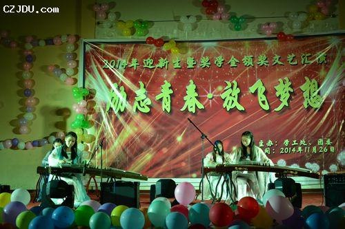 激揚(yáng)的吉他演奏拉開(kāi)了典禮序幕,點(diǎn)燃了現(xiàn)場(chǎng)觀眾的熱情,震撼著觀眾們的視覺(jué)與聽(tīng)覺(jué)。美聲歌曲《當(dāng)秀發(fā)拂過(guò)我的鋼槍》、歌伴舞《黑龍江岸邊潔白的玫瑰花》悠揚(yáng)舒緩,引人入勝;舞蹈《Boys and girs》、《炫舞青春》、《少女之歌》、《青春的活力》動(dòng)感而激情的舞姿彰顯了建東學(xué)子青春的力量與動(dòng)力;小品《快與慢》配以詼諧幽默的語(yǔ)言和夸張的動(dòng)作表演博得觀眾陣陣喝彩;滬劇《風(fēng)雨同齡人》的表演,彰顯了中國(guó)傳統(tǒng)文化戲曲的魅力;古箏演奏《漁舟唱晚》清雅脫俗,讓觀眾在悠揚(yáng)的樂(lè)曲中放松身心;魔術(shù)表演展示了魔術(shù)的神奇魅力,魔術(shù)師詼諧幽默的語(yǔ)言互動(dòng)使得表演妙趣橫生;歌曲《平凡之路》輕靈而嫻熟的節(jié)奏、以及與音樂(lè)的完美融合使晚會(huì)達(dá)到了另一個(gè)高潮。此次演出還特意邀請(qǐng)了2014級(jí)新生班輔導(dǎo)員客串,給大家?guī)?lái)了精彩的歌曲《我的未來(lái)不是夢(mèng)》,為演出增光添彩。師生們的精彩演出為文藝匯演畫(huà)上了圓滿的句號(hào)!