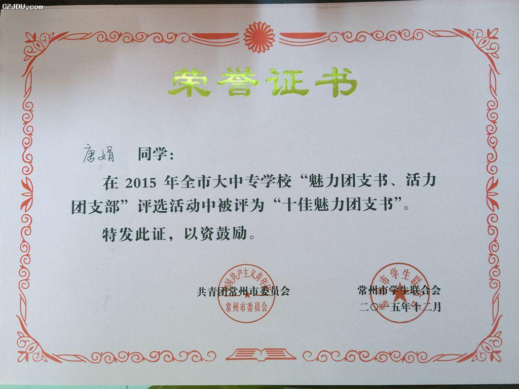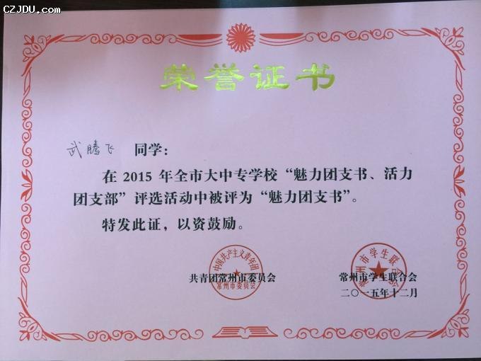 同時,我院有五個優(yōu)秀團(tuán)支書被評選為“魅力團(tuán)支書”,分別為:電子系14級城市軌道交通控制班武騰飛、機(jī)械系14級汽車技術(shù)服務(wù)與營銷班仲靜、建筑系14級工程造價班韋斌佳、經(jīng)管系14級會計5班唐娟、藝術(shù)系14級學(xué)前教育2班顧文慧。