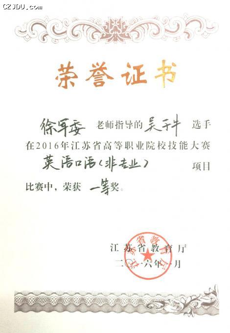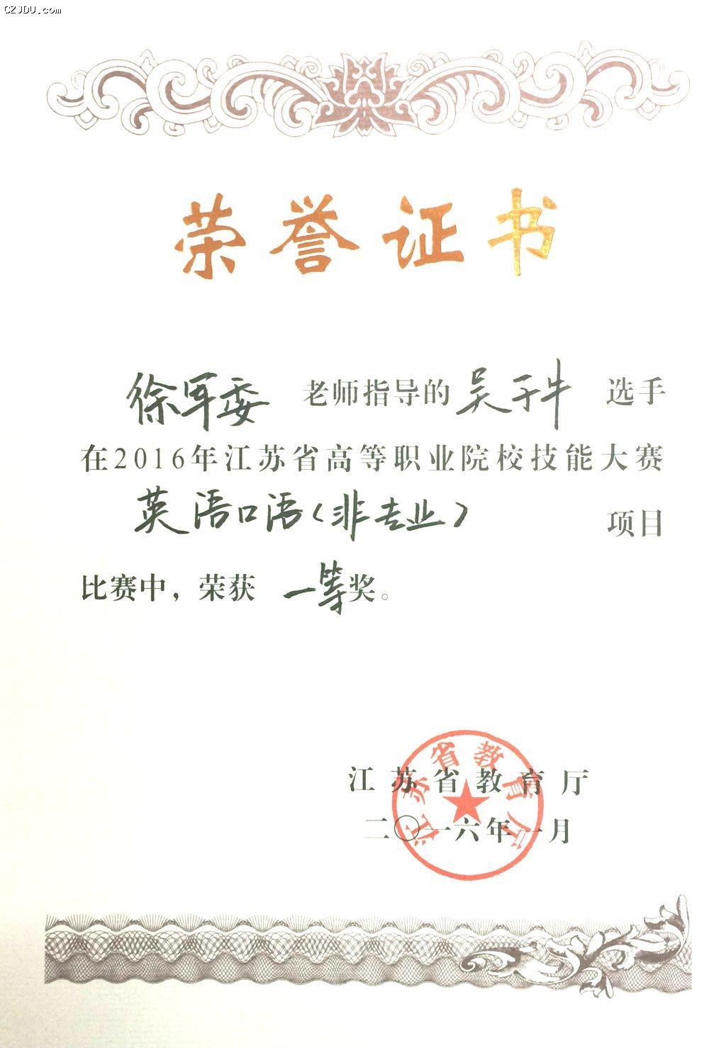 吳子牛同學(xué)獲獎(jiǎng)證書