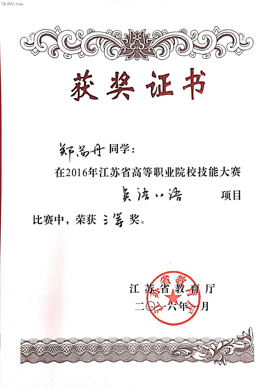 鄭茜丹同學(xué)獲獎(jiǎng)證書