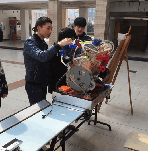 活動現(xiàn)場到處都能看到各個(gè)專業(yè)能手在進(jìn)行展示,你看,經(jīng)管系會計(jì)專業(yè)的姑娘們流利而準(zhǔn)確的點(diǎn)鈔姿勢,讓人嘆為觀止;酒店專業(yè)的餐桌擺臺、功夫茶展示、調(diào)酒展示等足以吸引眾人的眼球;涉外護(hù)理專業(yè)的學(xué)生在給各位師生測量血壓;高鐵乘務(wù)專業(yè)的同學(xué)們穿著漂亮的制服在一遍又一遍地演示者正確的商務(wù)禮儀坐姿、站姿等,多么美麗的一道風(fēng)景線啊。這邊,建筑系工程造價(jià)和工程測量的學(xué)生不甘示弱,水準(zhǔn)儀、經(jīng)緯儀齊上陣,給各位有興趣的學(xué)生講解基本用途和操作。電子系的學(xué)生將機(jī)電一體化、應(yīng)用電子、計(jì)算機(jī)應(yīng)用等專業(yè)上學(xué)到的變頻調(diào)速、單片機(jī)控制以及動畫多媒體技術(shù)搬到了活動現(xiàn)場,讓大家體驗(yàn)了一把小型計(jì)算機(jī)和電機(jī)的強(qiáng)大功能和使用方法。還有機(jī)械系的汽車檢測與維修、模具設(shè)計(jì)與制造專業(yè),學(xué)生們把汽車發(fā)動機(jī)搬到了現(xiàn)場,讓大家認(rèn)識各個(gè)零部件,還給有興趣的學(xué)生介紹游標(biāo)卡尺的使用方法。藝術(shù)系的學(xué)前教育和室內(nèi)設(shè)計(jì)專業(yè),更是人才百出,有學(xué)生在現(xiàn)場作畫,有學(xué)生在現(xiàn)場演奏,好不熱鬧,走過路過的學(xué)生也體驗(yàn)了基礎(chǔ)的畫畫常識和歌唱技巧。