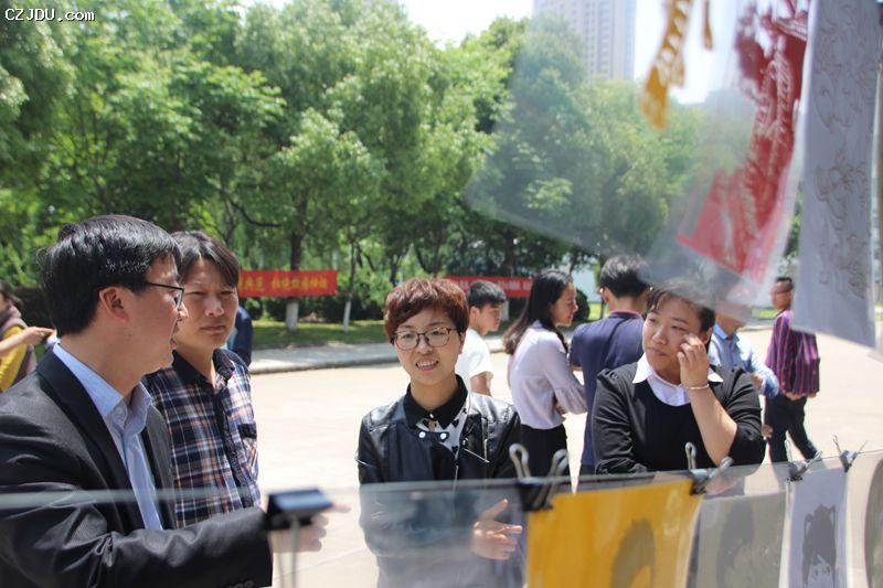本次活動榮幸邀請到了室內設計教研室主任陳煒維、藝術系團總支書記張晨光、輔導員高超老師蒞臨展覽現(xiàn)場。首先陳煒維主任為我們介紹了傳統(tǒng)剪紙藝術的魅力和剪紙中注意的技巧,隨后同學們根據自己的興趣愛好做成了一個個成功的作品。在陳主任的精心教授下,大家都全身心投入到剪紙藝術的樂趣中。三塊刻板、幾把刻刀、幾層合訂的紅紙,大家有板有眼地剪著刻著,大家都自豪地拿著自己的剪紙作品向大家們展示,并且獲得了大批駐足觀賞的老師及同學們的贊賞。
