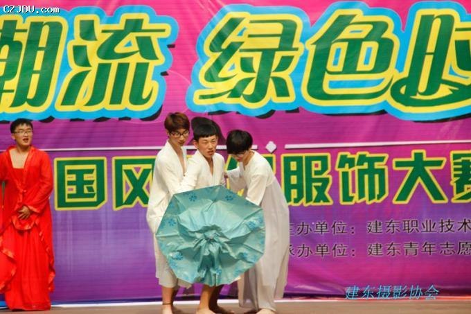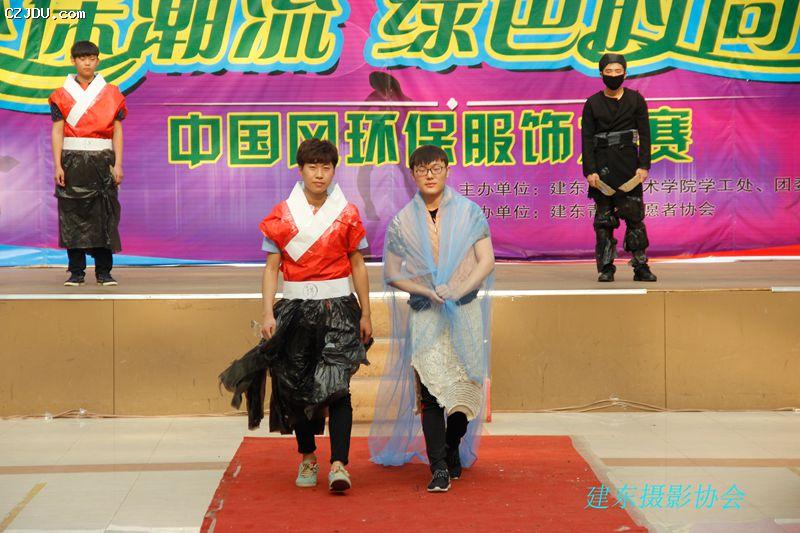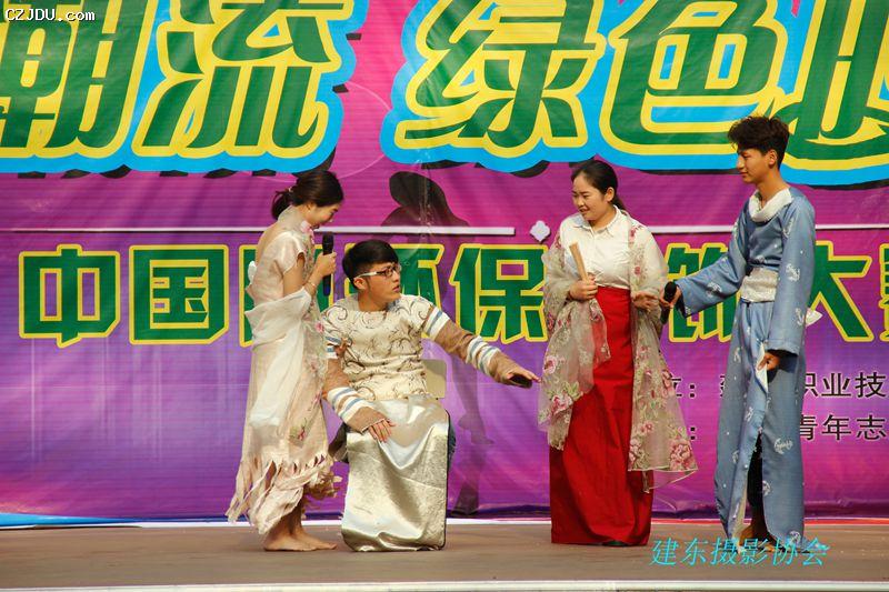 本次比賽分為服裝設(shè)計(jì)和服裝展示兩個(gè)環(huán)節(jié)。參賽選手在前期的“服裝設(shè)計(jì)”環(huán)節(jié)圍繞萬世“衣”系的中國風(fēng)主題,通過對舊衣服、舊床單、舊蚊帳、廢塑料袋、橫幅等廢棄物進(jìn)行再次利用和創(chuàng)作,形成本小組的參賽作品。最后在“服裝展示”環(huán)節(jié)以一個(gè)具有代表性的歷史故事情節(jié)為背景,用簡短小話劇和小品的形式展示出來,讓觀眾在欣賞一件件優(yōu)秀作品的同時(shí)還能融入一段有特色的小故事中。比賽現(xiàn)場,匠心獨(dú)運(yùn)的設(shè)計(jì)加上精湛的演技,贏得觀眾的陣陣掌聲。