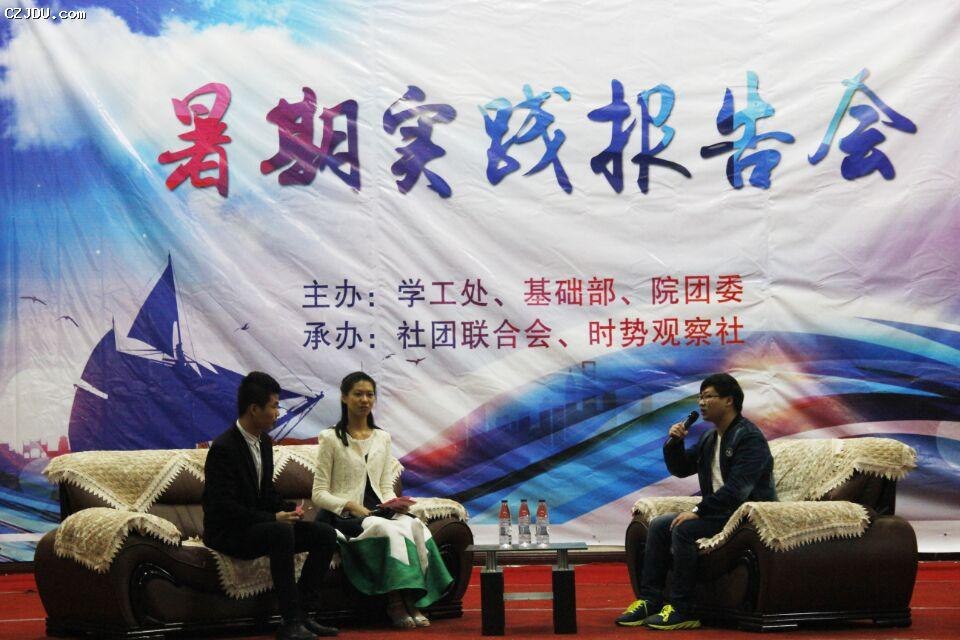 報(bào)告會(huì)在一首動(dòng)人的現(xiàn)代舞中熱烈開場(chǎng)。隨后,李帥和朱迪分享他們創(chuàng)建聚會(huì)吧的故事;吳政澤介紹了大學(xué)生兼職的各種形式和注意事項(xiàng);石健分享了自己在校三年期間投身各學(xué)生組織工作的經(jīng)驗(yàn)事跡;陳凱永介紹了今年暑期社會(huì)實(shí)踐的心得與體會(huì)。之后,指導(dǎo)老師王艷君老師對(duì)本次暑期實(shí)踐報(bào)告會(huì)進(jìn)行了簡(jiǎn)單總結(jié),肯定了時(shí)勢(shì)觀察社社員們的辛苦付出,并就近期的三創(chuàng)實(shí)事進(jìn)行了舉例點(diǎn)評(píng)分析,指明了我院學(xué)生在創(chuàng)業(yè)、創(chuàng)新、創(chuàng)優(yōu)過程中應(yīng)努力和學(xué)習(xí)的方向。