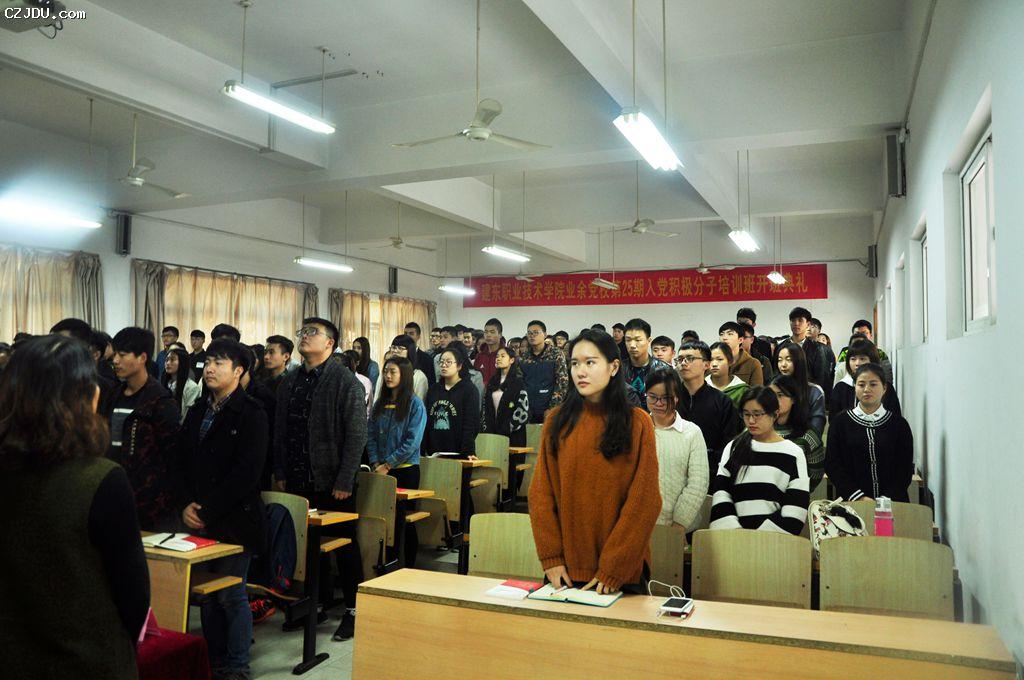 典禮由學(xué)院組織人事處處長趙雅男主持。典禮儀式在雄壯的國歌聲中開始,學(xué)院黨委副書記、副院長、業(yè)余黨校副校長孫利兵同志宣讀了第25期黨訓(xùn)班學(xué)習(xí)計(jì)劃及學(xué)員守則和考核辦法。學(xué)院黨委書記、副院長、業(yè)余黨校校長丁高明同志作了動員講話。他強(qiáng)調(diào)業(yè)余黨校的學(xué)習(xí)培訓(xùn),是每一個要求進(jìn)步的青年的必修課程,是接受黨的教育的極好時機(jī)。鼓勵在校大學(xué)生通過業(yè)余黨校的學(xué)習(xí)自覺踐行社會主義核心價值觀、不斷完善自身素質(zhì),為中華民族偉大復(fù)興貢獻(xiàn)青春力量。同時,他對學(xué)員提出了殷切希望和具體要求,一是要系統(tǒng)學(xué)習(xí)黨的基本知識,提高政治理論素質(zhì);二是要不斷端正入黨動機(jī),樹立正確的世界觀、人生觀和價值觀。勉勵青年學(xué)生要深入學(xué)習(xí)習(xí)近平總書記的重要講話精神,自覺做到知行合一,踏踏實(shí)實(shí)做人做事;三是要深入理解黨員標(biāo)準(zhǔn),結(jié)合自己的思想實(shí)際,認(rèn)真查找自己的差距,查找存在的不足,從而明確努力方向,制定前進(jìn)規(guī)劃,爭取早日站在鮮紅的黨旗下,成為一名光榮的共產(chǎn)黨員。