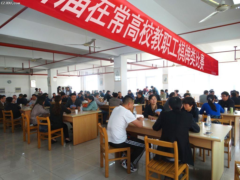 4月16日,在常高校首屆教職工棋牌類摜蛋比賽在我院教工活動(dòng)中心舉行。此次比賽由常州市教育工會(huì)主辦,建東職業(yè)技術(shù)學(xué)院工會(huì)承辦,11所在常高校共計(jì)110名選手參加,同時(shí)特邀市總工會(huì)派選手友情參賽。常州市教育工會(huì)主席汪天立,副主席李銳,常州市總工會(huì)女工工作部周凌虹部長出席了活動(dòng)。常州市教育工會(huì)汪主席宣布比賽開始。