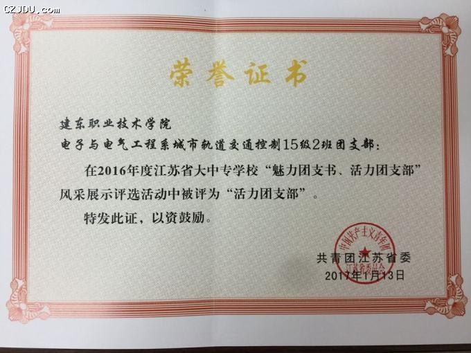 近日,共青團(tuán)江蘇省委發(fā)布了《關(guān)于表彰2016年度江蘇省大中專(zhuān)學(xué)?!镑攘F(tuán)支書(shū)”、“活力團(tuán)支部”的決定》,表彰了2016年度江蘇省大中專(zhuān)學(xué)?!镑攘F(tuán)支書(shū)”、“活力團(tuán)支部”。經(jīng)學(xué)校組織推薦和專(zhuān)家嚴(yán)格評(píng)審,全省共有100位團(tuán)支部書(shū)記被授予“魅力團(tuán)支書(shū)”稱(chēng)號(hào),共有300個(gè)團(tuán)支部被授予“活力團(tuán)支部”稱(chēng)號(hào)。我院電子與電氣工程系15級(jí)城市軌道交通控制2班團(tuán)支部被評(píng)為江蘇省“活力團(tuán)支部”。