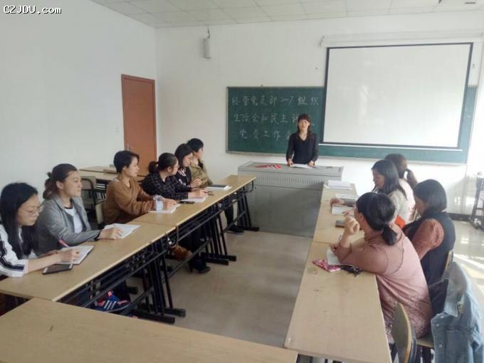 根據(jù)常州市委教育工委部署,按照學(xué)院黨委組織生活會和民主評議黨員的通知,經(jīng)濟管理系開展了專題組織生活會和民主評議黨員工作,支部全體黨員首先集中學(xué)習(xí)了習(xí)近平新時代中國特色社會主義思想和《中國共產(chǎn)黨章程》相關(guān)內(nèi)容。隨后,支部書記陳小娜同志代表支部通報了支部班子查擺問題情況、黨支部工作情況,以及本次組織生活會征求到意見建議情況,并代表班子做對照檢查。支委會成員、全體黨員進行了對照檢查,嚴肅而熱烈開展了批評與自我批評,大家踴躍發(fā)言,為黨支部建設(shè)建言獻策。