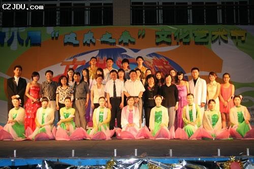 本場晚會由學(xué)生工作處主辦、院團(tuán)委承辦,演出人員由在校學(xué)生、輔導(dǎo)員組成,還特別邀請了常州市關(guān)工委老戰(zhàn)士藝術(shù)團(tuán)友情演出。院黨委書記范永法同志在演出前的致辭中,代表學(xué)院對本屆藝術(shù)節(jié)的成功舉辦表示熱烈的祝賀,向在藝術(shù)節(jié)中作出貢獻(xiàn)的各位老師表示衷心的感謝,向前來我院參加友情演出的常州市關(guān)工委老戰(zhàn)士藝術(shù)團(tuán)表示崇高的敬禮!