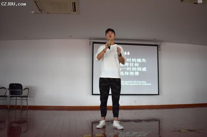 最后,“自強(qiáng)之星”的四名同學(xué):沈鴻飛、張洪順、曹士林與錢逸軒首先用演講結(jié)合PPT演示的形式向同學(xué)們展示了他們?cè)谛赡甓鄷r(shí)間內(nèi),在學(xué)習(xí)、生活、工作等各方面成長(zhǎng)的過(guò)程中如何克服挫折、自立自強(qiáng)從而收獲成績(jī)。然后,用一首《少年中國(guó)說(shuō)》的激情演繹鼓舞全場(chǎng)所有新生,少年需自強(qiáng)。