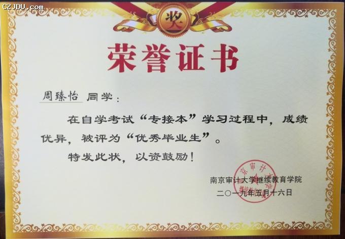 5月31日,南京審計大學繼續(xù)教育學院召開專接本2019屆“優(yōu)秀畢業(yè)生”評選會,按照南京審計大學高等教育自學考試“專接本”專業(yè)優(yōu)秀畢業(yè)生評選辦法,對所有對接院校學制期內應屆畢業(yè)生進行了評選。我院2019屆專接本審計學專業(yè)的3名學生周臻怡、龔晶晶、舒苗榮獲南京審計大學專接本“優(yōu)秀畢業(yè)生”稱號。這不僅體現(xiàn)著學院專業(yè)內涵建設的明顯提升,也標志著我院專接本辦學水平又上了一個新臺階。
