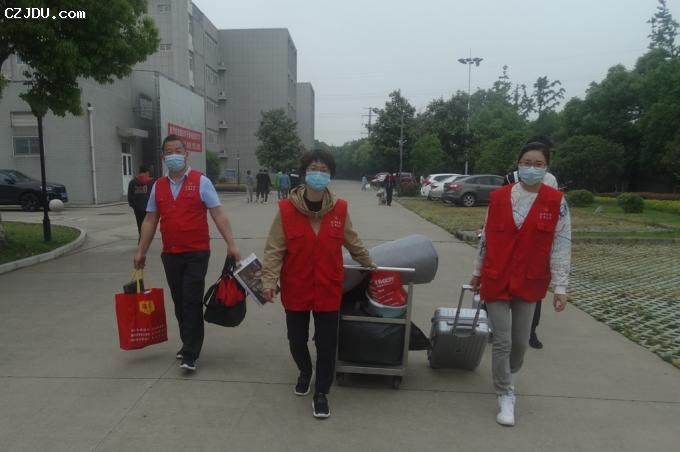 立夏時(shí)節(jié),校園內(nèi)郁郁蔥蔥。5月8日下午,學(xué)院機(jī)關(guān)支部全體黨員將學(xué)生宿舍床上用品提前進(jìn)行布置,方便學(xué)生返校后取用。5月9日至10日,學(xué)院迎來陸續(xù)分批返校的學(xué)生,各支部黨員按照計(jì)劃安排,克服早晨的涼風(fēng)微襲和日間的烈日當(dāng)頭,發(fā)揚(yáng)不怕疲勞的精神,積極熱情迎接返校學(xué)生,幫助家長卸下行李,用手提、車推將學(xué)生行李一件一件、一趟一趟運(yùn)送至指定宿舍,使送行的學(xué)生家長放心回程,深深體會(huì)到學(xué)院春季開學(xué)防控疫情的嚴(yán)格,服務(wù)的周到,關(guān)心的細(xì)致。
