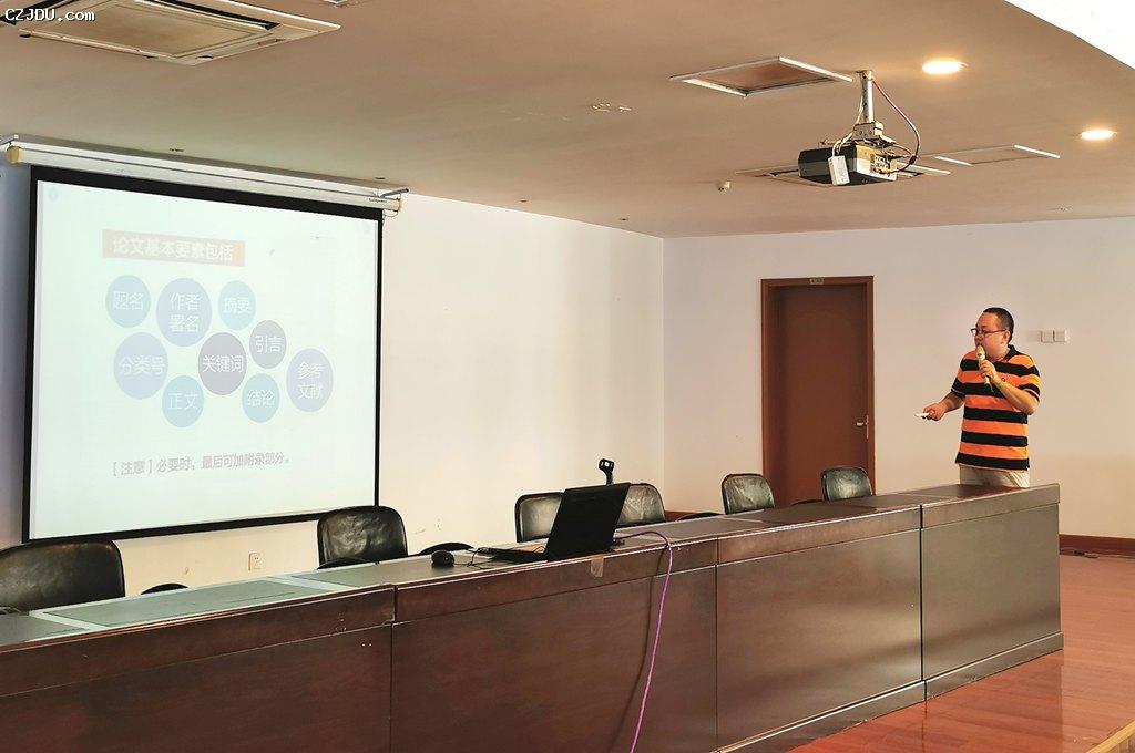 副研究員連春光老師從撰寫科研論文的必要性開始,重點就論文選題、文獻查閱、論文撰寫與修改、論文投稿等方面進行講解;向在座老師分享了論文修改技巧、論文投稿注意事項等方面的個人體會。